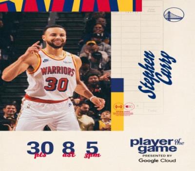 赛后,勇士官方宣布斯蒂芬-库里当选本场比赛最佳球员。