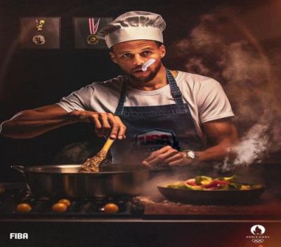 赛后,国际篮联晒图大厨库里。