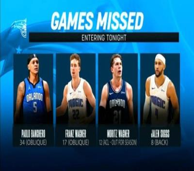 肃然起敬魔术4员主将赛季至今共伤缺71场战绩仍排东部第5