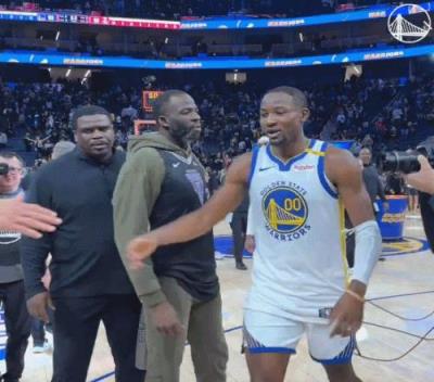 赛后,追梦、库里和希尔德争相与库明加庆祝胜利,小伙子今天在库追缺席的情况下率领球队捍卫了主场!