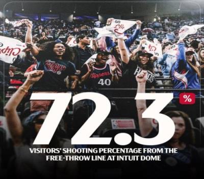 “墙”真有用!快船主场直觉巨蛋的客队罚球命中率72.3%联盟最低