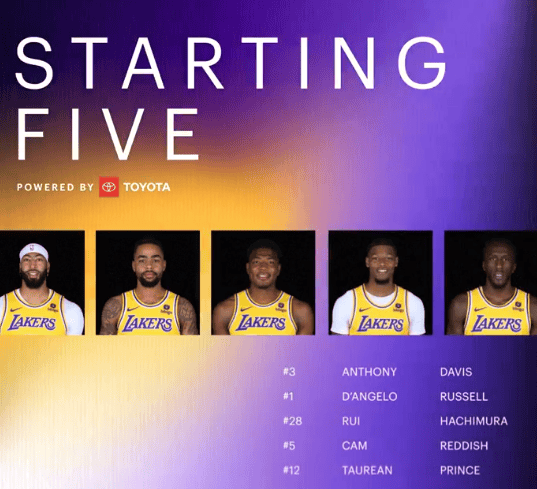 今天洛杉矶湖人队将在一场紧张刺激的比赛中迎战圣安东尼奥马刺队。在比赛开始前,湖人队公布了他们本场比赛的首发阵容。