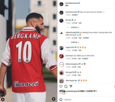 体育资讯2月4日报道宣称 本泽马更新了自己的社媒动态,晒出了自己在比赛和日常生活中的视频vlog,其中有本泽马身穿博格坎普的阿森纳复古球衣的一幕。