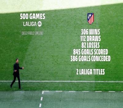 体育资讯2月2日报道宣称 本轮西甲比赛中,马竞2-0击败马洛卡。这场比赛是西蒙尼在西甲中执教的第500场里程碑。马竞向他送上了祝贺。