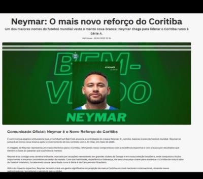周六,科里蒂巴官网突然发布内马尔将在2025年7月加盟球队的消息,但一个小时后将公告删除。