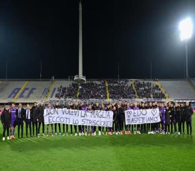 意大利杯赛前佛罗伦萨全队举横幅支持博维:我们在等你,博维!