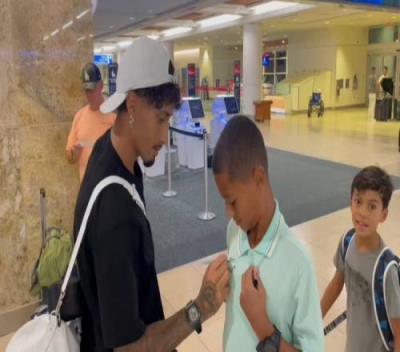 巴萨开启美国季前赛之旅,拉菲尼亚入选名单,他独自抵达奥兰多,将与球队会合。