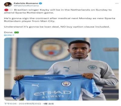 罗马诺指出,曼城边锋凯基将在本周日前往荷兰,观看鹿特丹斯巴达对阵费耶诺德的比赛。这位巴西球员将在下周一接受体检,然后与鹿特丹斯巴达签署合同。这将是一笔租借交易,协议中不包含选择买断条款。