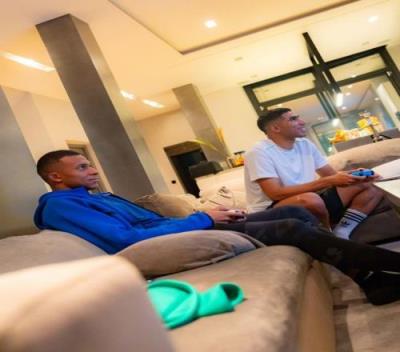 从他社媒的照片中可以看出,他和好朋友阿什拉夫在家里打了游戏,还和阿什拉夫、巴黎门将特纳斯等人玩起了笼式网球。