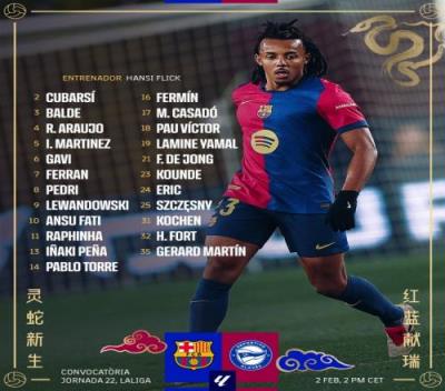 体育资讯2月2日报道宣称 北京时间今天晚上21点,巴萨将在西甲第22轮比赛中主场对阵阿拉维斯。巴萨公布了本场比赛的球员名单,上面写有灵蛇新生、红蓝献瑞字样。伊尼戈-马丁内斯伤愈回归,克里斯滕森、奥尔莫因伤继续缺席。