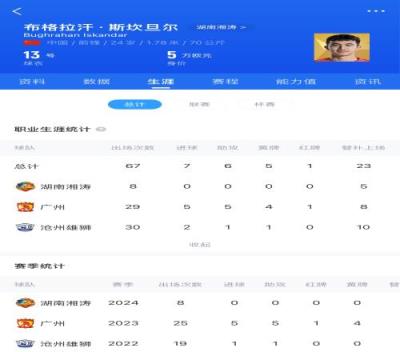 布格拉汗现年24岁,布格拉汗2019年被上调至广州一线队,2021年加盟沧州雄狮,2023年离开沧州雄狮重返广州队,2024年加盟成都蓉城,租借至湖南湘涛半年。