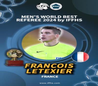 体育资讯12月25日报道宣称 IFFHS(国际足球历史和统计联合会)官方宣布,35岁的法国裁判莱特西尔当选2024年度最佳裁判。