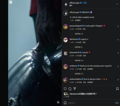 随后,佩佩在皇马时期的队友莫德里奇和J罗在社媒留言致敬。