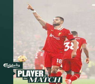 利物浦官方社媒晒出海报,宣布加克波当选本场比赛利物浦队内最佳球员。