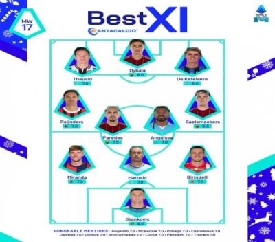 体育资讯12月24日报道宣称 意甲官方评选了第17轮最佳阵容,具体如下: