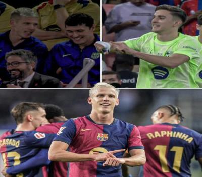 第17分钟,加维破门随后对着场边做出了奥尔莫同款庆祝动作。