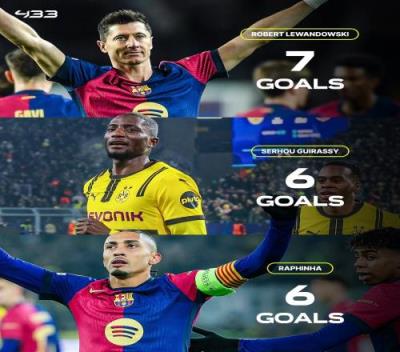 欧冠射手榜:莱万7球居首,拉菲尼亚&吉拉西6球哈兰德&凯恩等5球