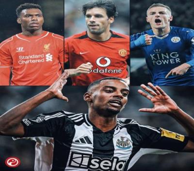 英超连场进球纪录:伊萨克8场并列第3,瓦尔迪11场第1,范尼10第2