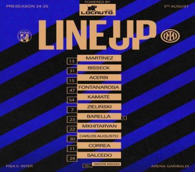 体育资讯8月3日报道宣称 北京时间8月3日凌晨1点30分,国米将与意乙比萨进行一场友谊赛,赛前国米方面公布了本场比赛的首发阵容,具体如下: