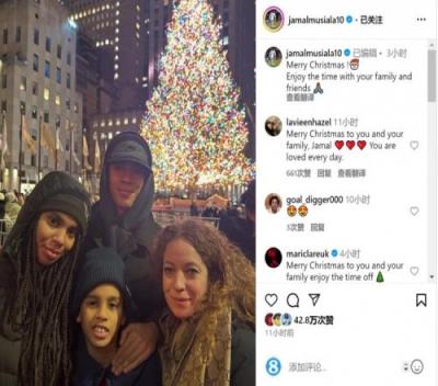 穆西亚拉在社交媒体上晒出与家人的合照,配文:“圣诞快乐,享受与家人、朋友共度的时光。”