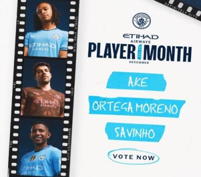 体育资讯12月31日报道宣称 今日,曼城官方公布了12月队内最佳球员候选人,阿克、奥尔特加和萨维尼奥在列。
