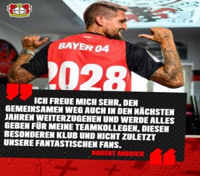 对此,安德里希表示:“我对这个结果感到高兴,在接下来的几年里,我会继续和勒沃库森在一起,为俱乐部、为球队以及为球迷奉献我的一切。”