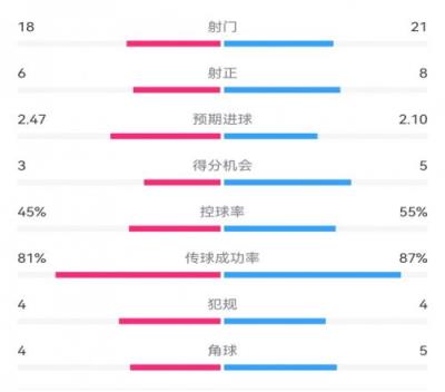 小蜜蜂22曼城数据:射门1821,射正68,得分机会35