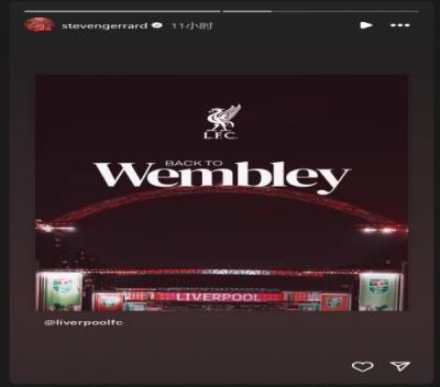 利物浦传奇球星杰拉德更新社媒动态,晒出利物浦重返温布利(决赛场地)的海报,祝贺老东家晋级联赛杯决赛。