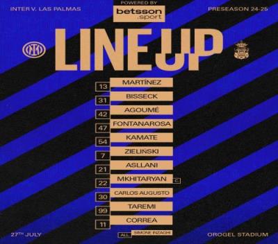 体育资讯07月28日报道宣称 季前友谊赛,国米vs拉斯帕尔马斯比赛即将打响,赛前首发出炉。