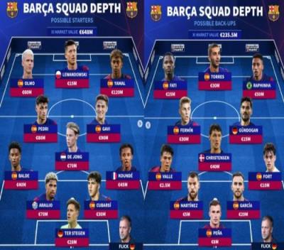 体育资讯8月20日报道宣 西甲联赛已经战火重燃,《转会市场》也根据巴萨当前阵容列出了两套首发,亚马尔领衔主力阵。
