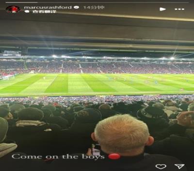 拉什福德更新社媒,晒照在老特拉福德球场内观看这场比赛,他表示道:“加油,队友们”。