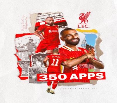 此役将是萨拉赫为利物浦出战的第350场比赛,利物浦官方社媒晒出为萨拉赫制作的海报,祝贺他达成这一里程碑。