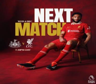 利物浦官方社媒发布为此役制作的海报,乔-戈麦斯单人出镜。利物浦官方账号写道:“接下来,红军将在圣詹姆斯公园球场对阵纽卡。”