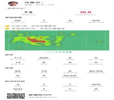 卓越!马奎尔本场1球+4解围9对抗6成功9长传5成功获评7.5分