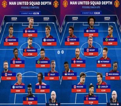 潜在替补阵:总身价2.61亿欧元