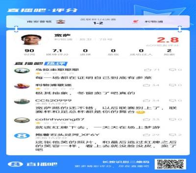 赛后吧友给宽萨打出了2.8分的超低分,表示:“每一场都在证明自己倒地有多菜”。