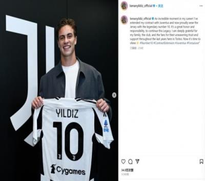 体育资讯8月17日报道宣 尤文已经官方宣布和伊尔迪兹续约至2029年,并将10号球衣交给了这位土耳其小将。伊尔迪兹也通过社媒发文纪念。