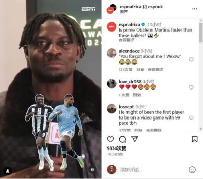 体育资讯12月17日报道宣称 国米&中超旧将、前尼日利亚国脚奥巴费米-马丁斯日前接受ESPN采访,并谈到关于自己的速度。