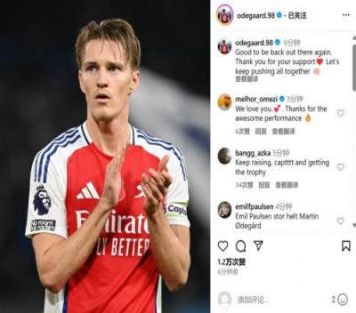本场比赛厄德高伤愈首发登场,并且助攻马丁内利打进一球。赛后厄德高也在社媒晒照,配文写道:“很高兴能够重回赛场,感谢大家的支持,让我们齐心协力继续前进!”