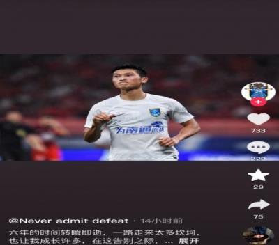 六年的时间转瞬即逝,一路走来太多坎坷,也让我成长许多,在这告别之际,心中是万般不舍。我想感谢俱乐部给予我的帮助与支持,还有我的队友、工作人员和教练,是你们让我每一天都在变得更好,能和你们一起并肩作战,我很荣幸。而在背后支持着我的球迷们,我真的很敬佩你们,在困难的时候,你们依然不离不弃的鼓舞着我,每场比赛都能感受到你们的能量。在这里的回忆我永远不会忘记,我已经把这里当作是我的家,而你们就是我的家人,相信我们再次相遇都会变得更好,我们顶峰相见!