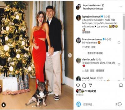 利桑德罗与怀孕的女友穆里-洛佩兹晒出合照,穆里-洛佩兹写道:“圣诞快乐!没有比与你共度节日更好的事情了,我的爱人,我爱你。”