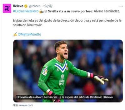 体育资讯7月20日报道宣称 西班牙媒体Relevo消息,西甲塞维利亚即将免费签下26岁西班牙门将阿尔瓦罗-费尔南德斯,球员德转身价250万欧。