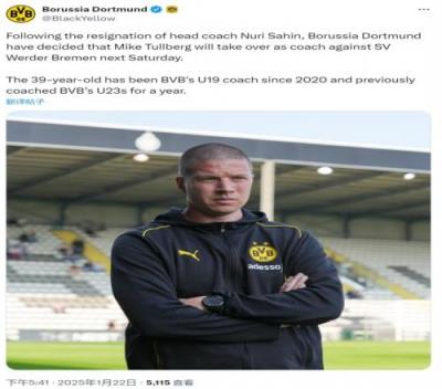 体育资讯1月22日报道宣称 多特官方发布公告,宣布图尔伯格担任临时主帅。