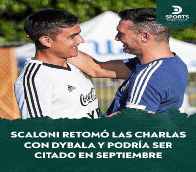 体育资讯8月8日报道宣 据阿根廷媒体Doble Amarilla透露,美洲杯之后,斯卡洛尼与迪巴拉进行了谈话。