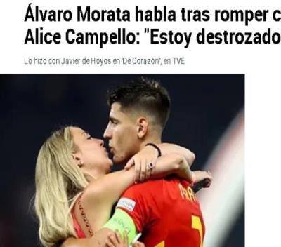 体育资讯8月19日报道宣 日前,莫拉塔宣布与妻子爱丽丝离婚的消息。莫拉塔本人近日接受采访,回应了这件事。