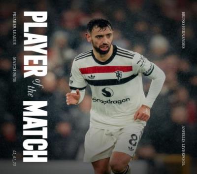 此役B费为曼联踢满全场,并助攻利桑德罗破门。曼联官方晒出海报,宣布B费当选本场比赛曼联队内最佳球员。