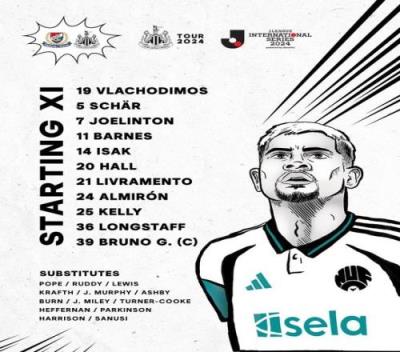 体育资讯8月3日报道宣 纽卡斯尔公布了今晚对阵横滨水手的首发阵容,布鲁诺领衔出战。