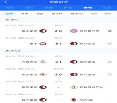 自12月0-3不敌埃因霍温后,费耶诺德正式赛事仅取得2胜1平5负的战绩,仅赢下了拜仁和一支荷丙球队。