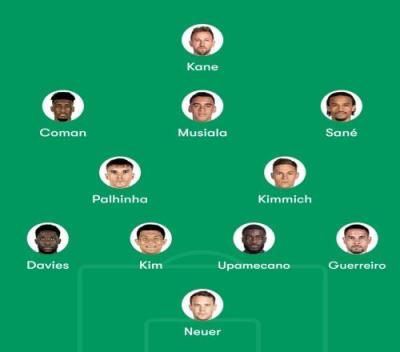 踢球者预测拜仁vs圣保利首发:凯恩领衔,科曼和萨内出场
