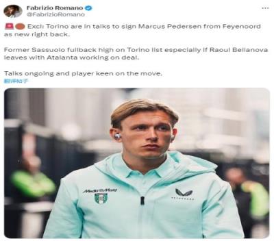罗马诺在推特上写道:“都灵正在与费耶诺德就签下马库斯-佩德森作为新的右后卫进行谈判。佩德森在都灵名单很靠前的位置上,尤其是如果贝拉诺瓦离队的话,亚特兰大正在操作后者的转会。”